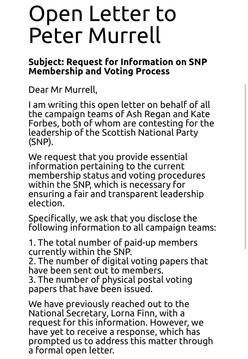 @AshReganSNP A spokesperson for Kate Forbes said: “It is standard practice for any election to be made aware of voting numbers in advance. This should be no different.”