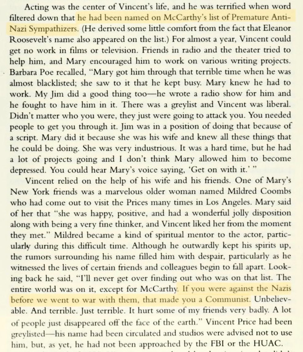 https://twitter.com/akilahobviously/status/1854724037479407968I wrote a thread about Vincent Price’s experience being investigated by the FBI and greylisted in the 1950s for this exact reason, and how saying that fascists were bad led to the blacklisting of two of his closest friends: