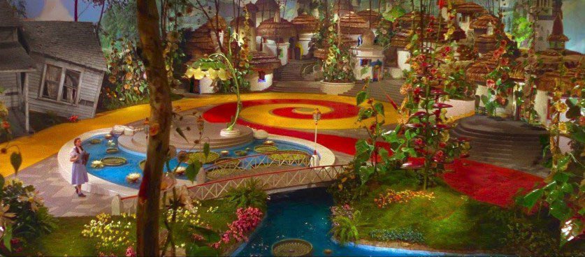 https://twitter.com/gothspiderbitch/status/1860851997286522938So, Munchkinland was designed to feel like a dream where you’re both the size of an ant, but somehow also too big for the town. Everything is supposed to feel a little bit “off”, a little bit artificial — the water’s too blue, the leaves are too glossy, the landscape too perfect.