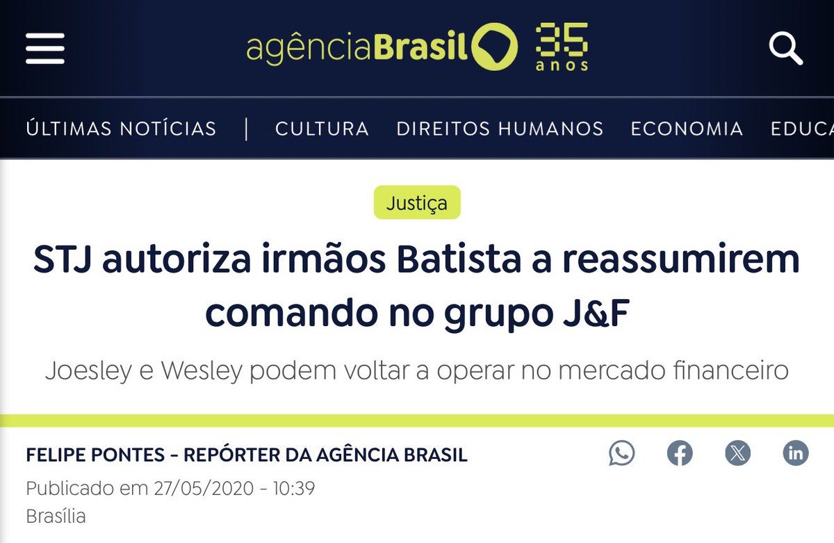 Em 2020 o STJ autorizou os irmãos Batista a voltarem ao comando do bilionário Grupo J&F.