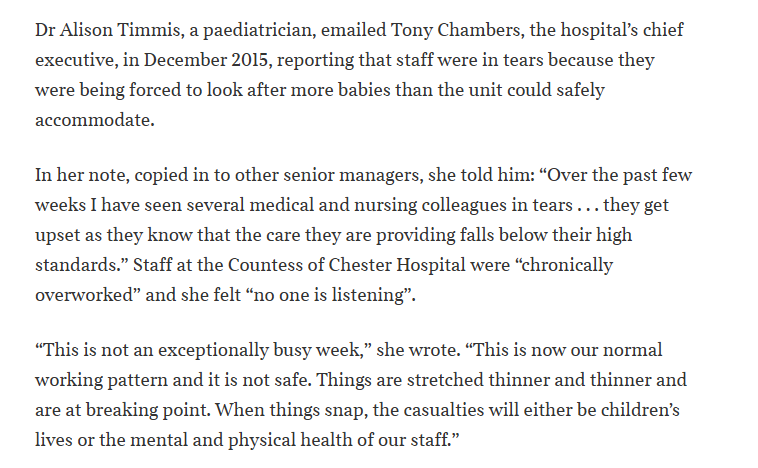 An RCPCH report also found staffing numbers "inadequate", "a pattern of insufficient senior cover" and "there should have been a greater level of consultant presence on the ward". (2/6)