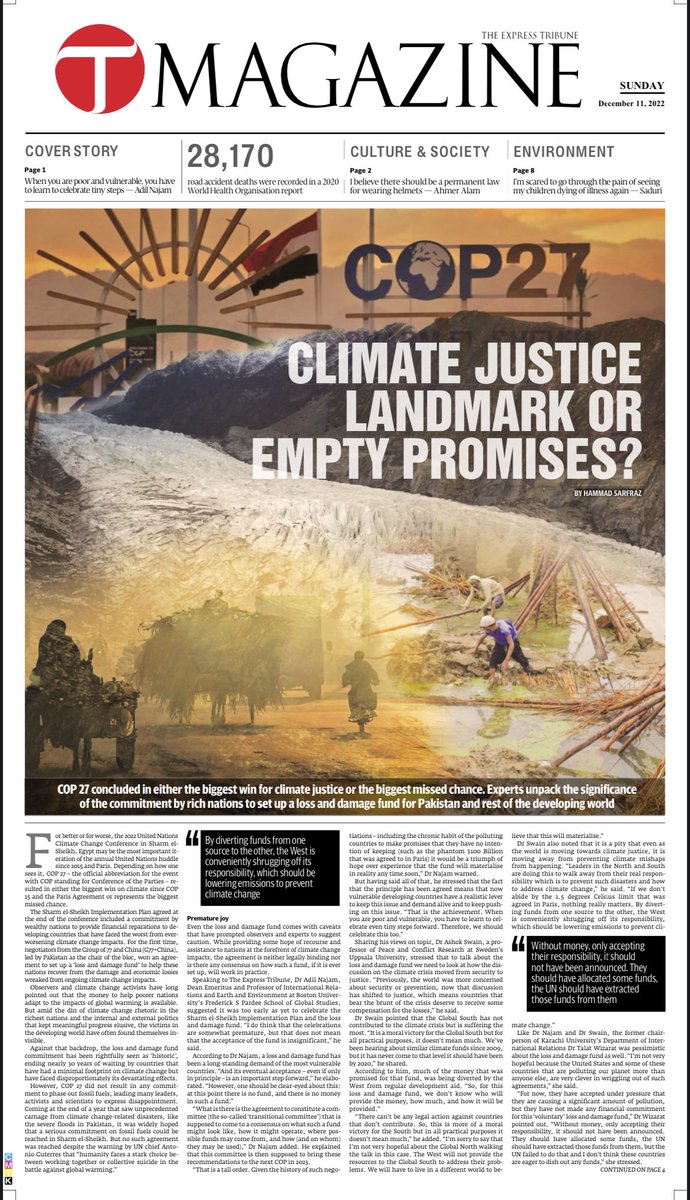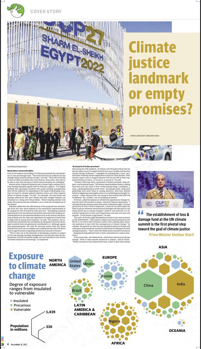 In my latest cover piece for the @etribune magazine, @ashoswai describes the loss and damage fund, agreed at #COP27, as another hollow promise. There are very few quantitative pledges.