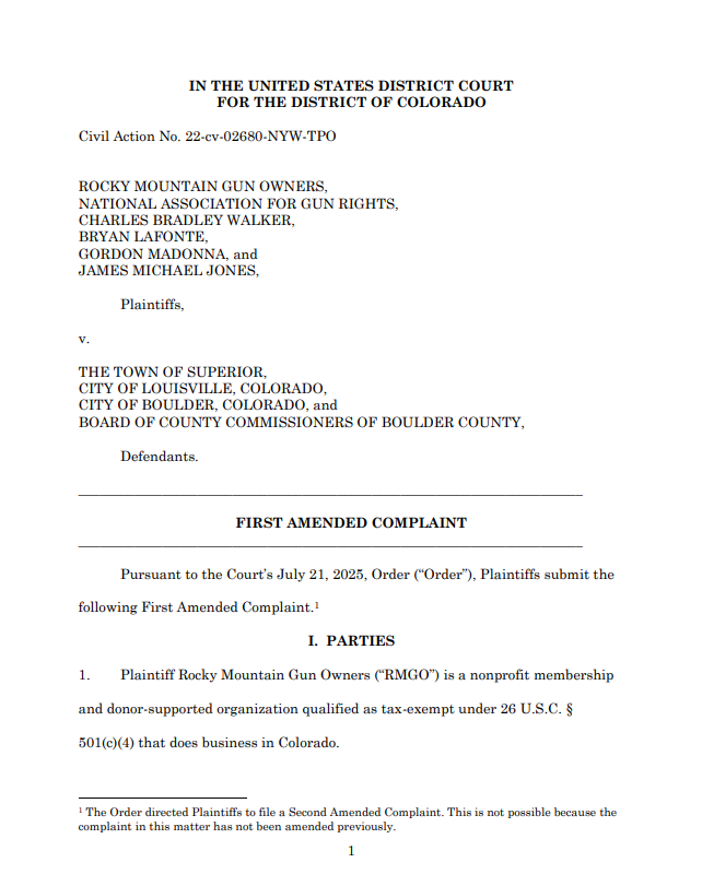 This lawsuit challenges gun and mag ban ordinances enacted by four Colorado local governments. These started as individual lawsuits where we won two back-to-back temporary restraining orders immediately after Bruen.
