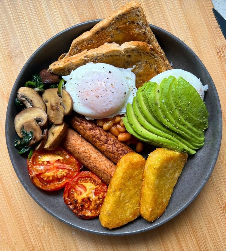 A true classic: eggs, sausages, bacon, baked beans, mushrooms, and toast. Hearty and satisfying—perfect for a great start to the day. 🥓🍳