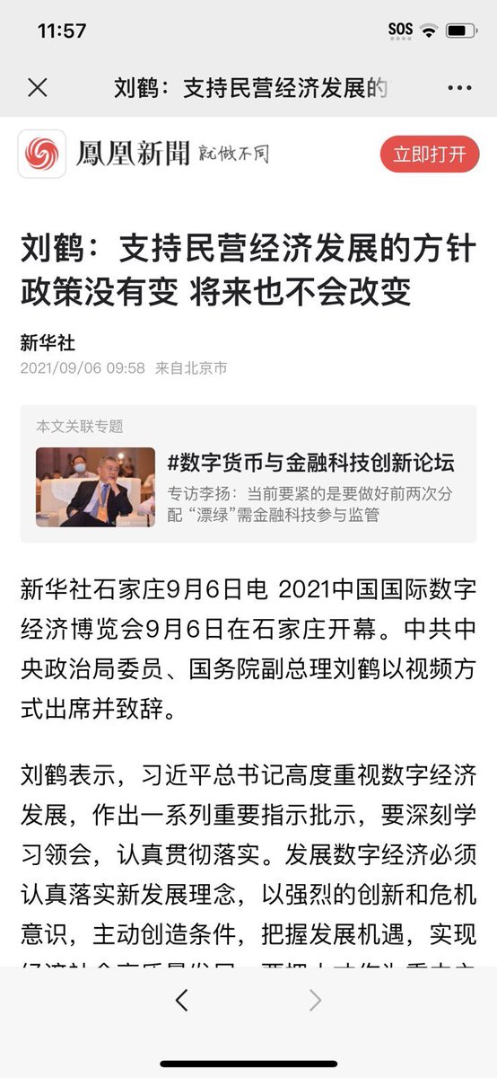 2021年9月,刘鹤:支持民营经济发展的方针政策沒有变,將來也不会变。