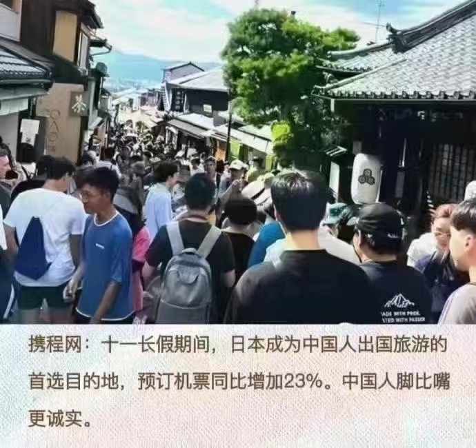 在刚刚过去的这个假期,很多中国人去日本旅游,有人因此评论:中国人脚比嘴更诚实。