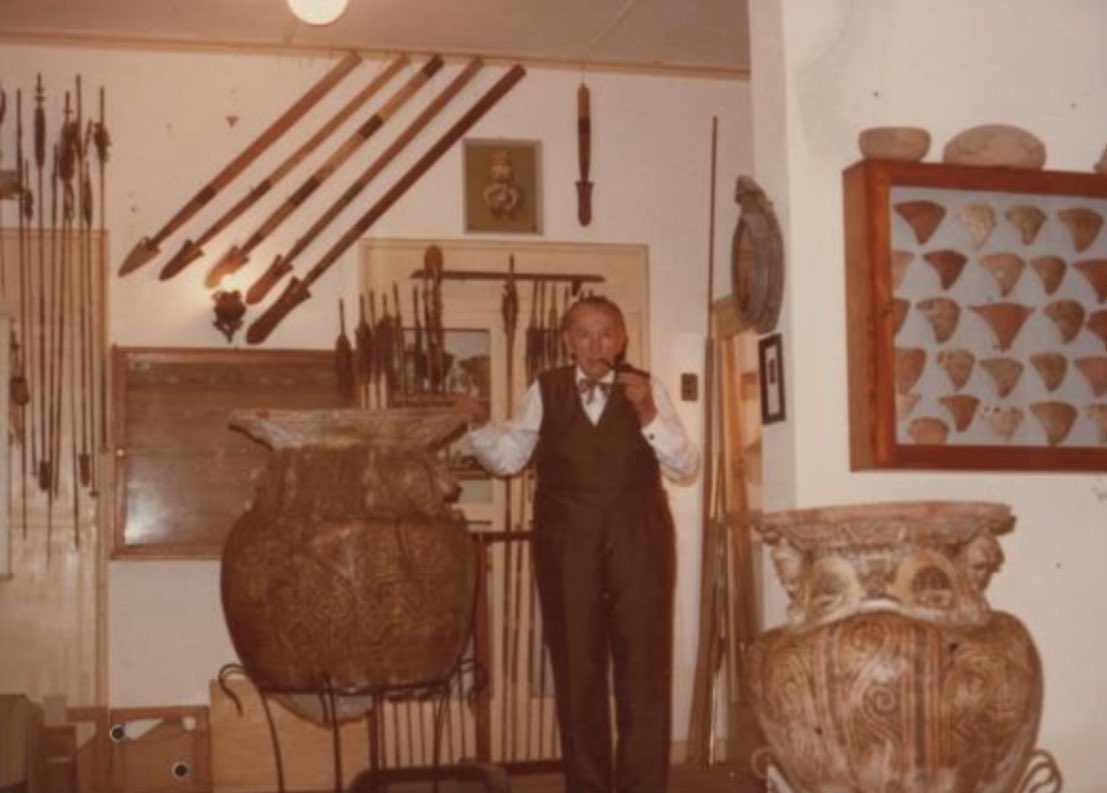 Tom Traugott Wildi, um arquiteto suíço estabelecido no Brasil, entusiasta da arqueologia amadora, que vivia em Florianópolis, realizou inúmeras expedições ao Arquipélago do Marajó, coletando artefatos e registrando meticulosamente suas descobertas em um diário de campo. +