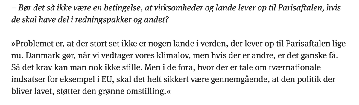 Ærlig talt ikke videre opløftet efter dette første interview fra klimaministeren post-corona. Noget er måske et temperamentsspørgsmål, og det starter fint, men så...👇 (tråd) #dkgreen#dkpol