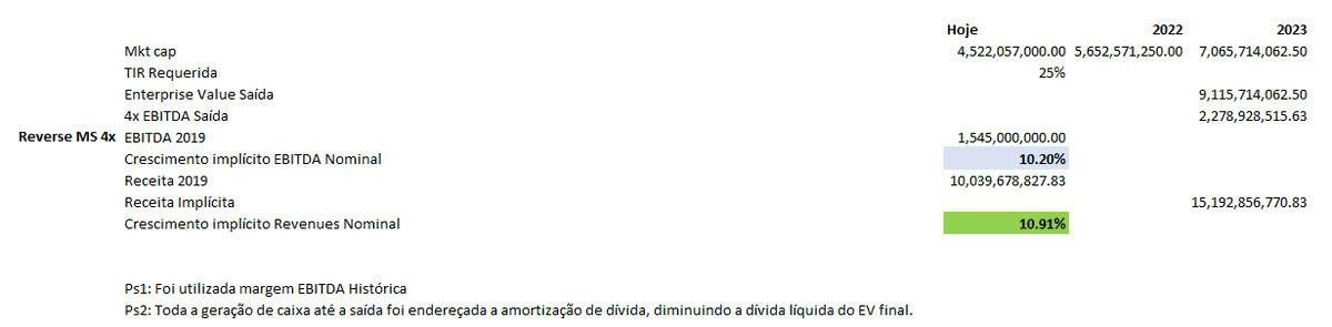- Estabeleça um retorno requerido alto (+25% a.a.) afinal você quer ser mt bem remunerado por apostar no "azarão"