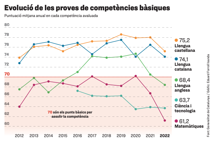 2) Reconeixent aquest factor, prou important, també caldria exposar que hi ha altres causes que expliquen aquest enfonsament de resultats, especialment a matemà tiques: