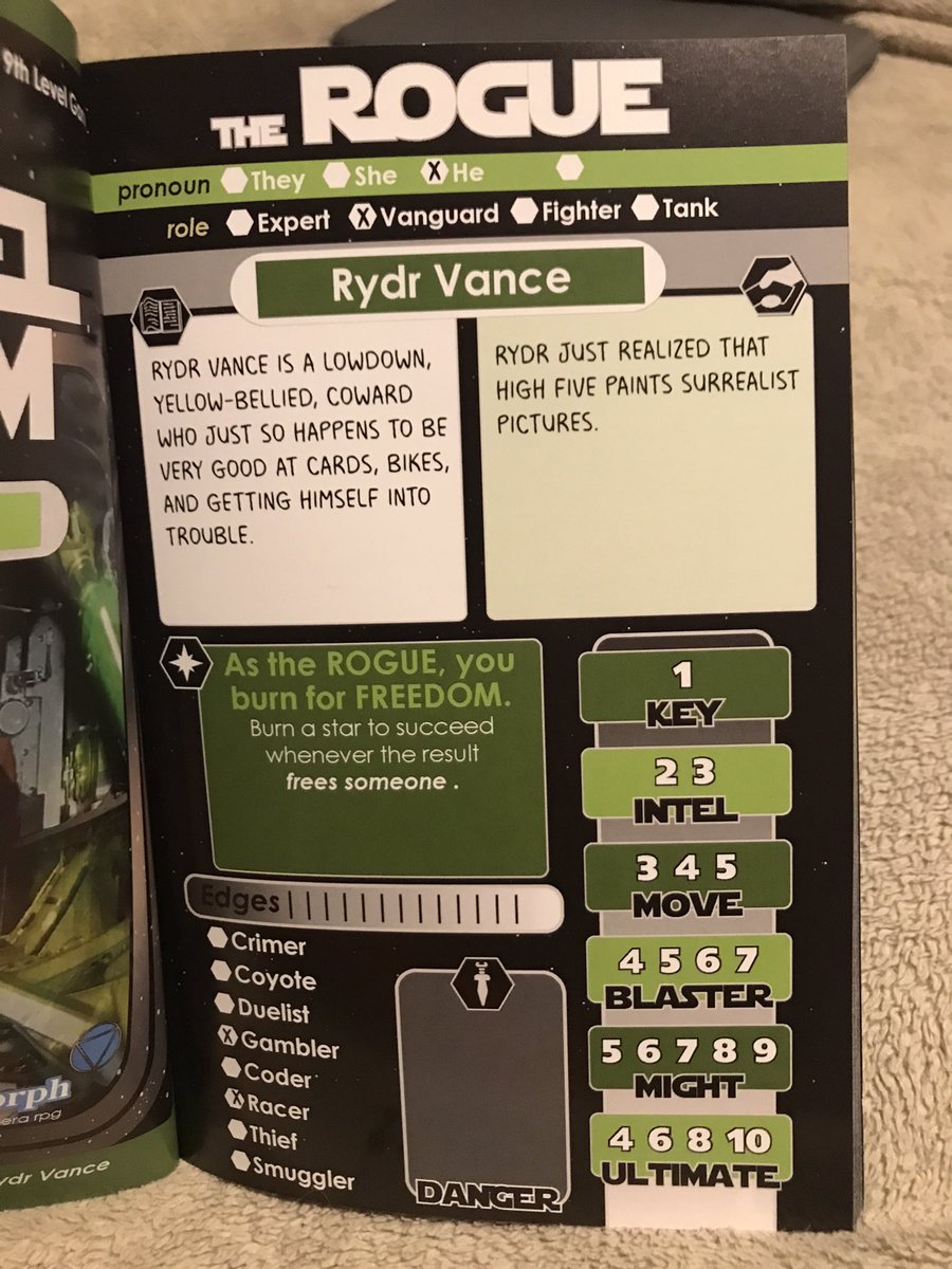 The rule system, polymorph, is so brilliant for one shots, so lightweight, so freeing that it feels revolutionary. I WILL be running an adventure in this (though I will be setting mine in a more familiar galaxy far far away). 2/