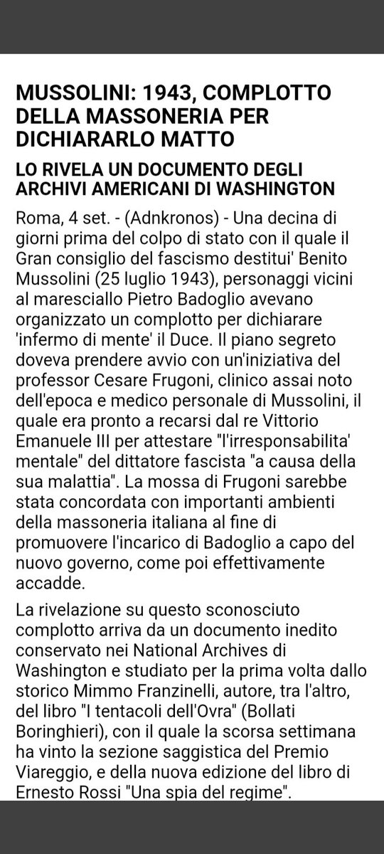 Tant'è che Mussolini, ben prima dalla marcia su Roma,fu agente d'influenza inglese finanziato dal MI5 per spingere l'Italia