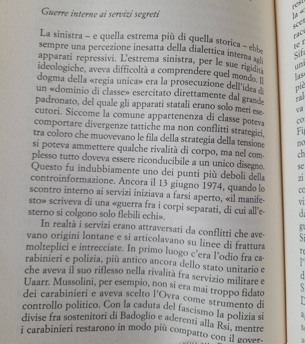 Secondo l' autore, i movimenti di sinistra, per limiti ideologici legati alla dicotomia della lotta di classe, vedevano un regia unica dietro alla strategia della tensione.