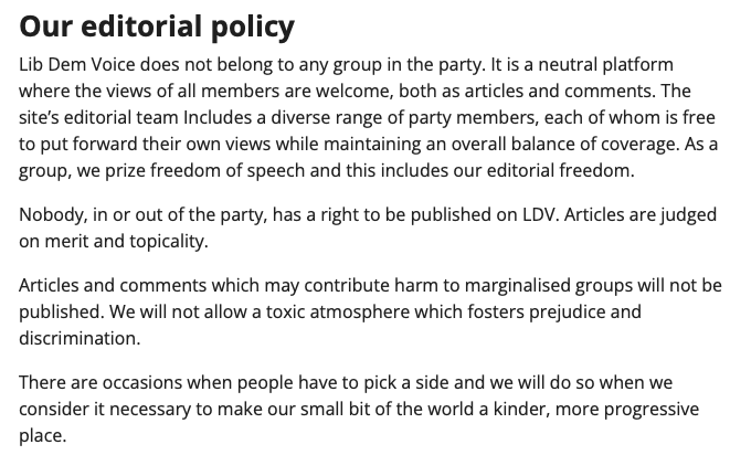 So, on the new website there is a handy drop-down menu called LGBTQ+ party policy. Bingo, I thought, here it will be. But no. Fourteen policies are mentioned but none are the Lib Dem Transgender and Intersex health charter I was looking for. lgbt.libdems.org.uk/resources/lgbtâŚ