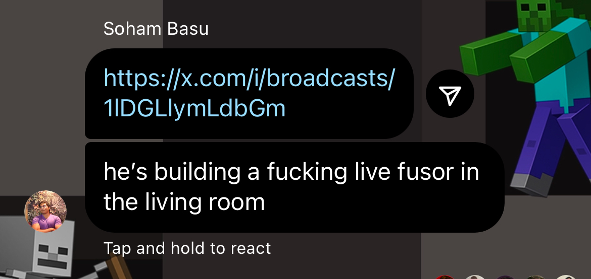 a few months ago I built a demo fusor that produced plasma—this was nowhere near capable to *actually* do fusion.