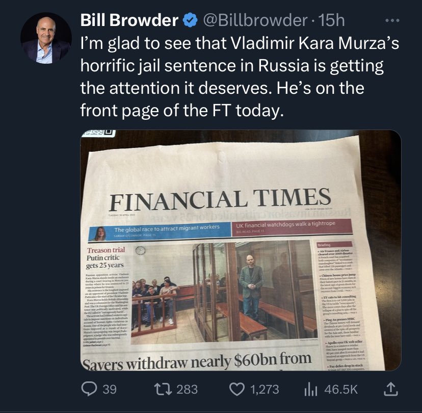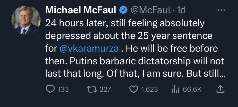 https://twitter.com/Peonichka/status/1648637881844367360Kara Murza is a brilliant speaker, no doubts about it. His command of the word and storytelling skill is impressive. And he starts by acknowledging the situation and mentioning how hard was it for him to get to the us because of closed airspace around russia.