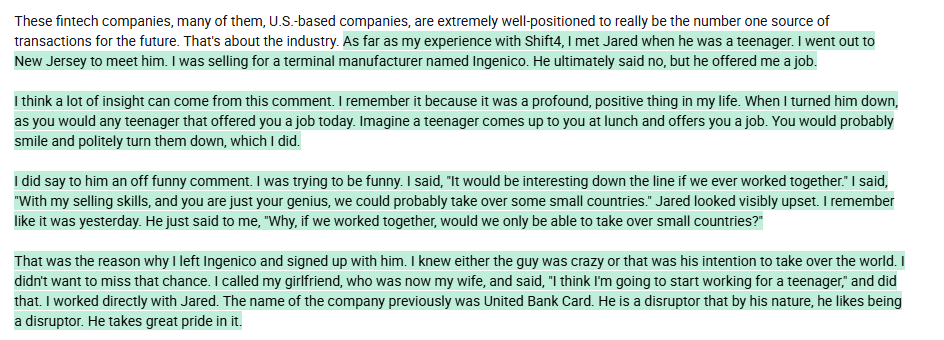 A few excerpts from a Tegus call w/ former VP at $FOUR