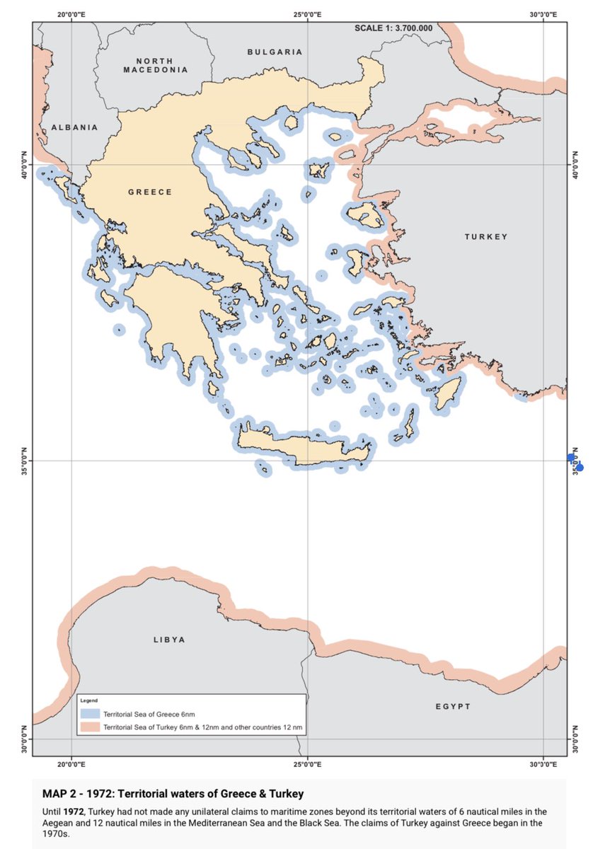 1️⃣According to the UN Convention on the Law of the Sea (UNCLOS), Greece has the right to extend its territorial waters to 12 nautical miles. Territorial waters are considered to be part of the country’s national territory.