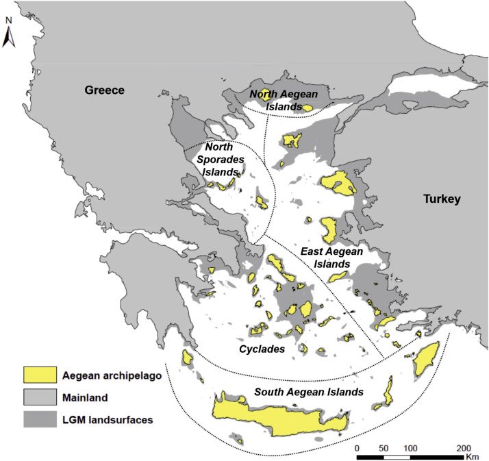 The Greek word Archipelago meaning "chief sea," was originally applied specifically to the Aegean Sea and its islands. Many of the Aegean islands are actually extensions of the mountains on the mainland. Later the word came to mean a large group or chain of islands.