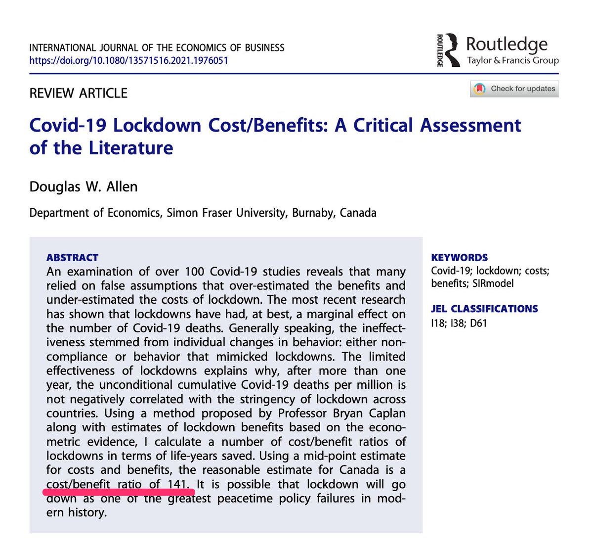Allen, D. W. (2021). Covid-19 Lockdown Cost/Benefits: A Critical Assessment of the Literature. International Journal of the Economics of Business.