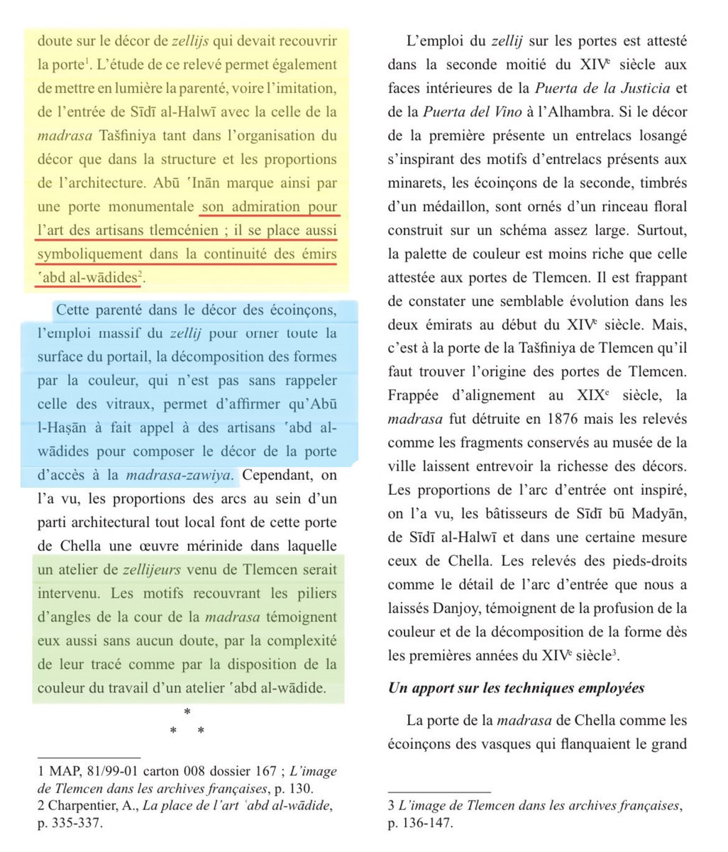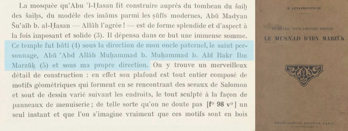 Dans ce thread, nous verrons que les édifices Mérinides ont plusieurs fois été sous l'influence de l’art Abd al-Wadide, allant jusqu’à l’emploi d’artisans Tlemcéniens, notamment pour les monuments construits à Tlemcen comme la mosquée Sīdī Bū Madyān construite sous la direction des tlemceniens Ibn Marzuq al-Khatib (1310-1379) et sa famille : les Banu Marzuq, mais aussi d’autre constructions dans l’actuel Maroc.