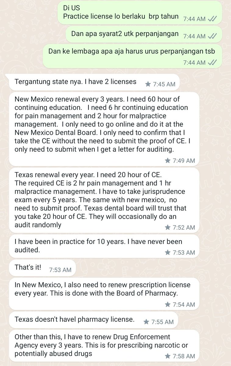 https://twitter.com/BiLLYKHAERUDIN/status/1679295649983102977dan punya lisensi di 3 negara bagian. Tiap2 negara bagian punya aturan berapa jam CE yg harus diikuti dan tiap berapa tahun SIP alias license practice nya diperbaharui.
