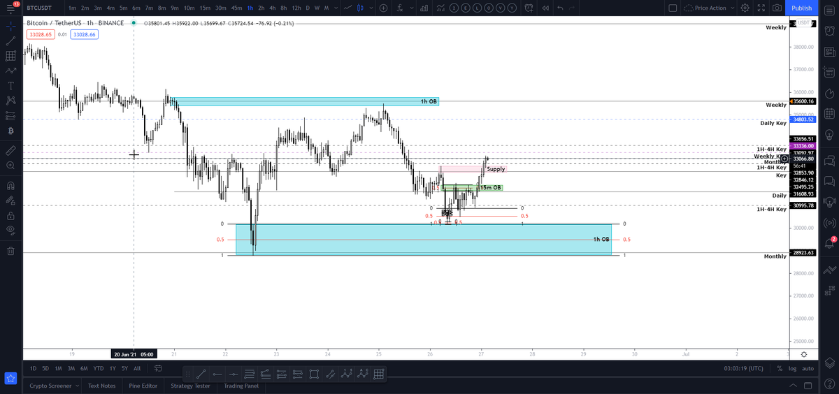 Ouch almost stopped out, fortunately I adjustet to the 15m OB and it worked fine. $BTC