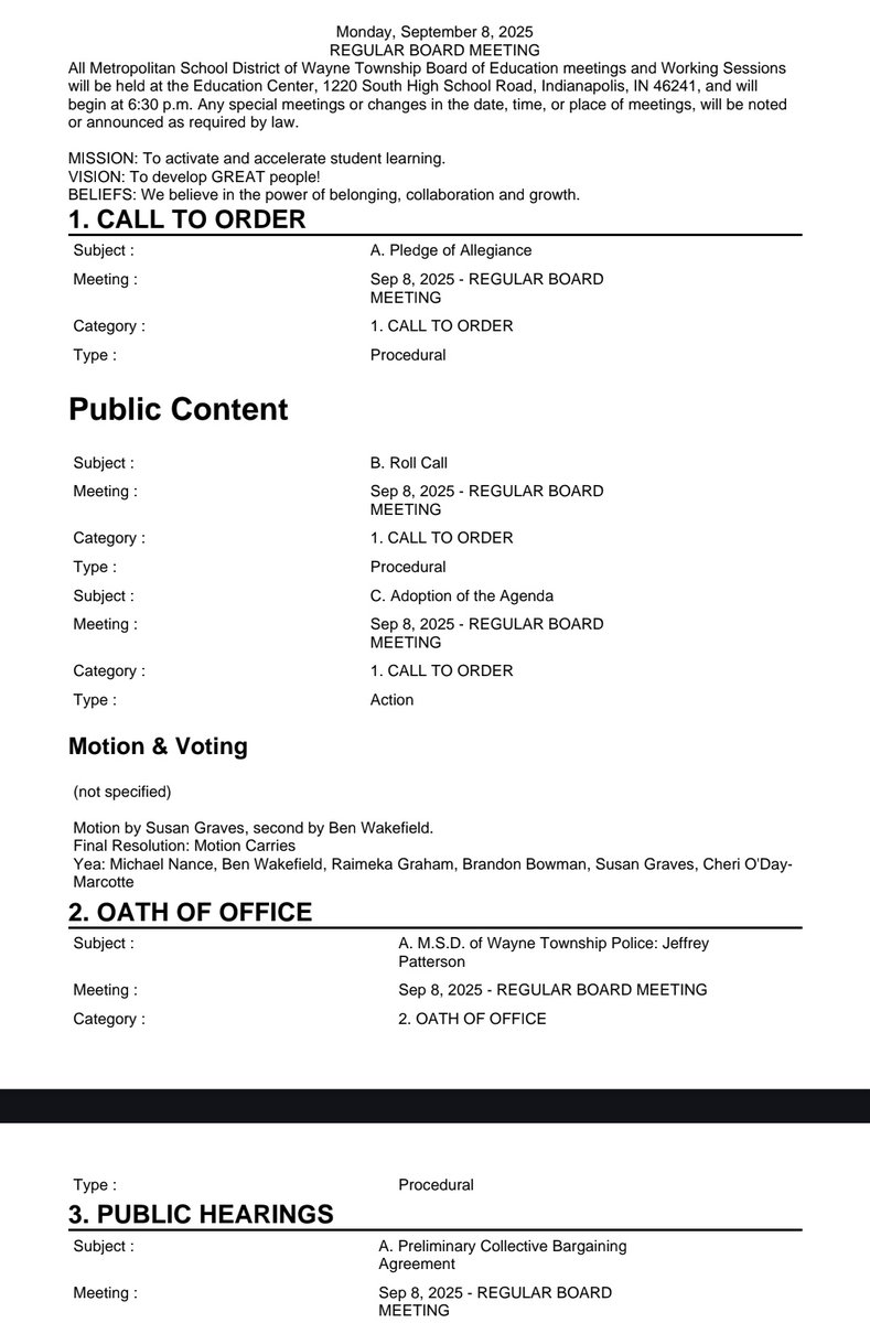 Good evening Indy. I'll be live-reporting from today's Wayne Township School Board Meeting for #indydocumenters @indydocumenterss @mirrorindy. Meeting is starting now at 6:30!