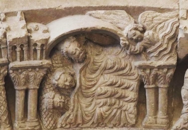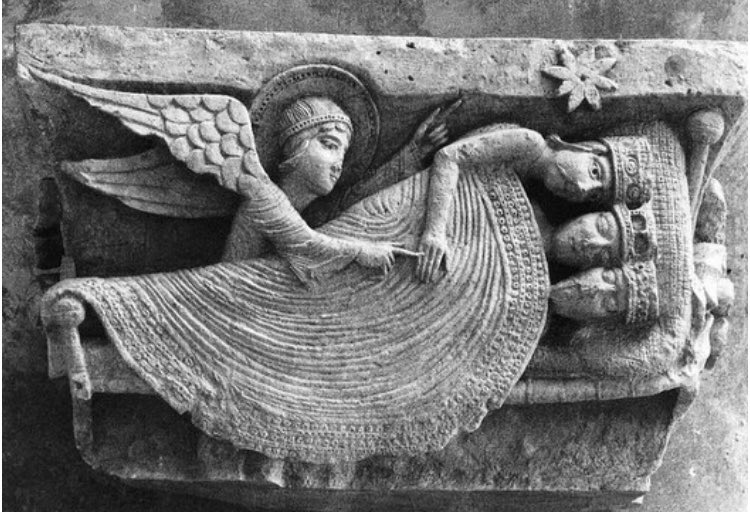 Después descubrí que la iconografía representa un momento distinto: un ángel recomienda en sueños a Melchor, Gaspar y Baltasar que regresen a Oriente por otro camino, sin pasar por Jerusalén, para no dar cuenta a Herodes de dónde está Jesús. Lo cuenta el Evangelio s. san Mateo.