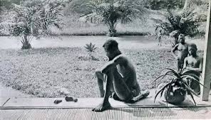 Congolese father stares at the severed hands and feet of his 5 year old after he failed to meet the rubber quota. Colonized by leopold of Belgium