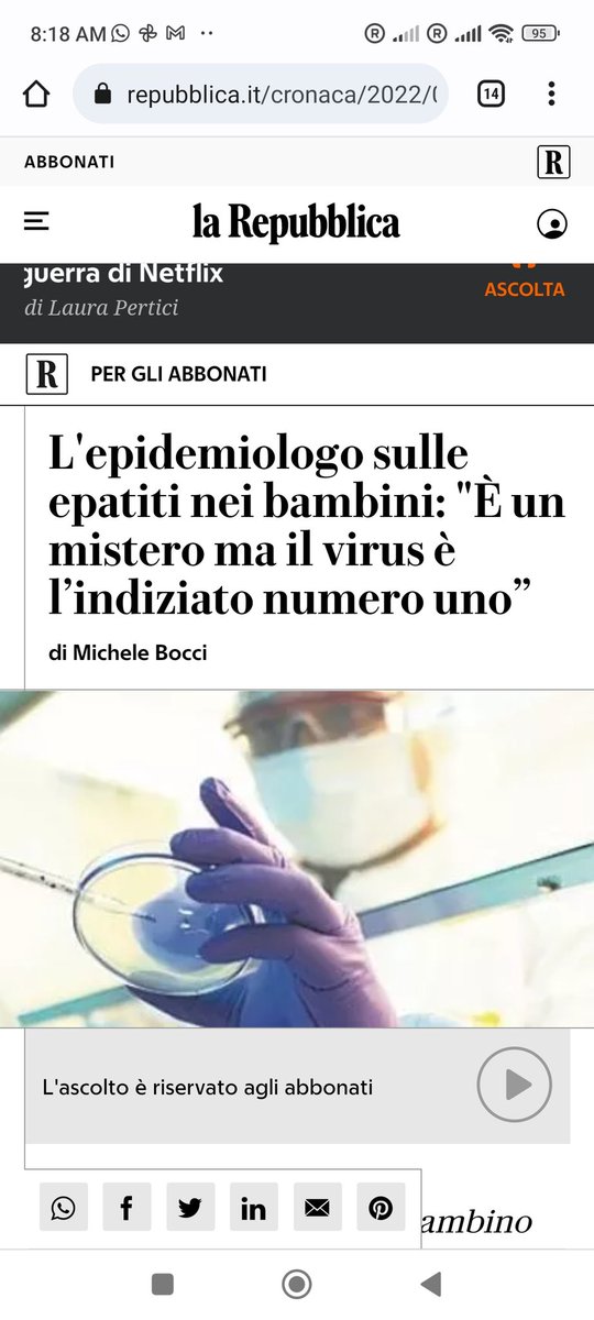 https://twitter.com/Patriziapattys/status/1516878835366735873According to experts of the Bambino Gesù pediatric hospital of the university of Rome, COVID-19 is the first suspect on the list for this mysterious hepatitis