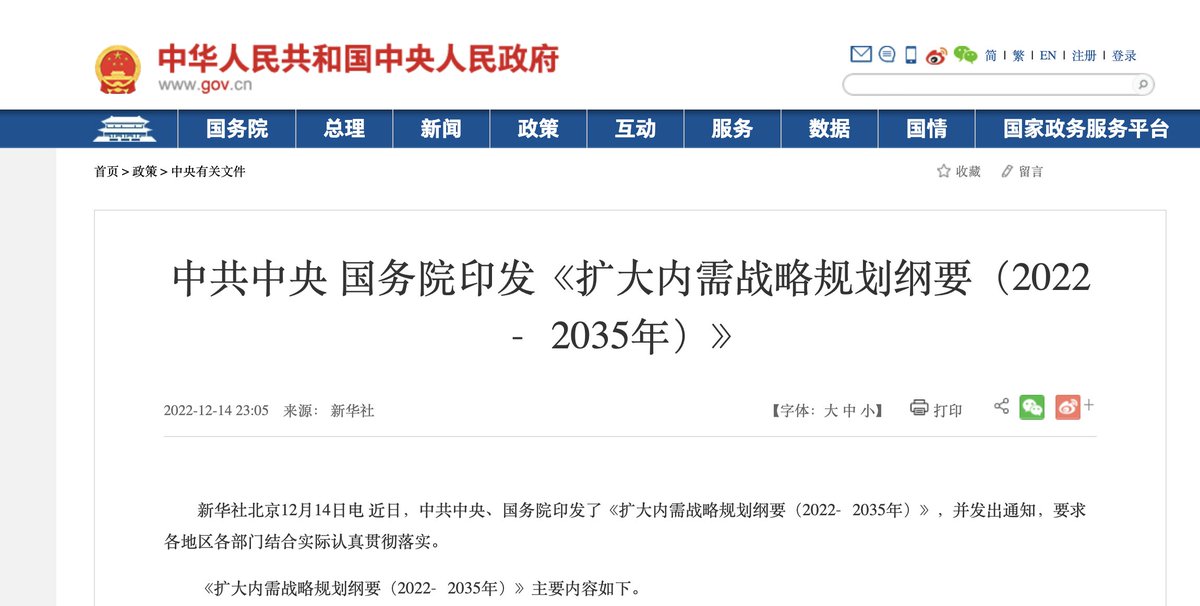 https://twitter.com/xQpsnS2o58cNBxt/status/1602527228029304832China just published this 《扩大内需战略规划纲要(2022-2035年)》 plan to expand domestic demand between 2022 and 2035.