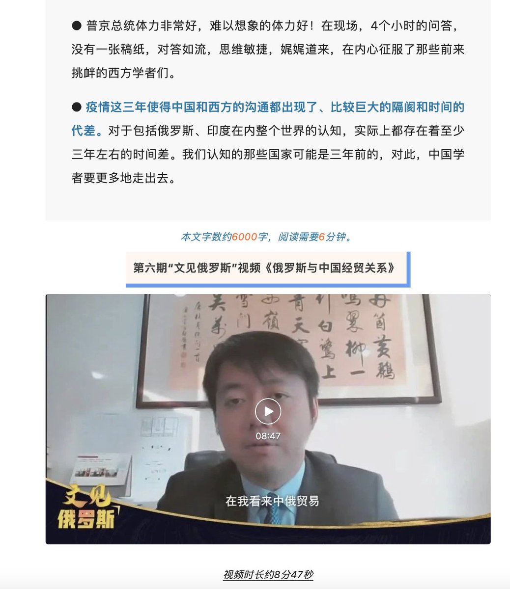 "At the beginning of 2023, Tencent Finance launched "Wen See Russia", a series of seven video interviews with Wang Wen, which was broadcast on the Tencent News app and received a great response, causing millions of netizens to admire it."