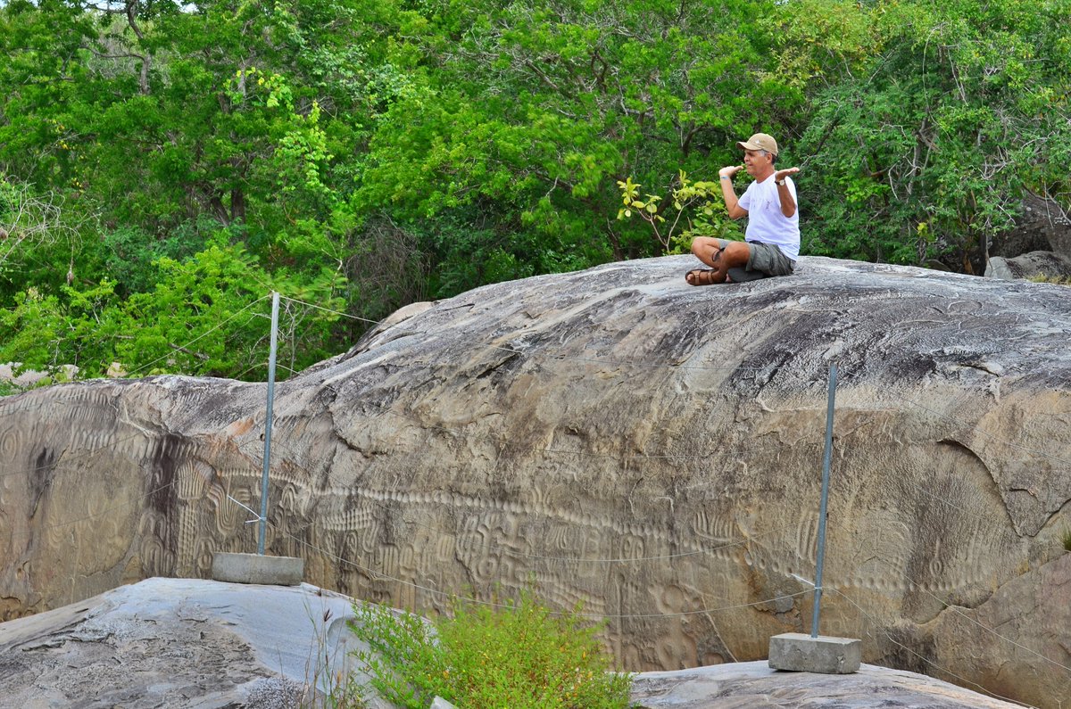 Este enigmático monumento es la Pedra do Ingá y se encuentra en el municipio de Ingá, en el estado de Paraíba, Brasil. Hablamos de una gigantesca formación rocosa de gneis que mide unos 46 metros de largo y casi 4 metros de alto en sus puntos más elevados.