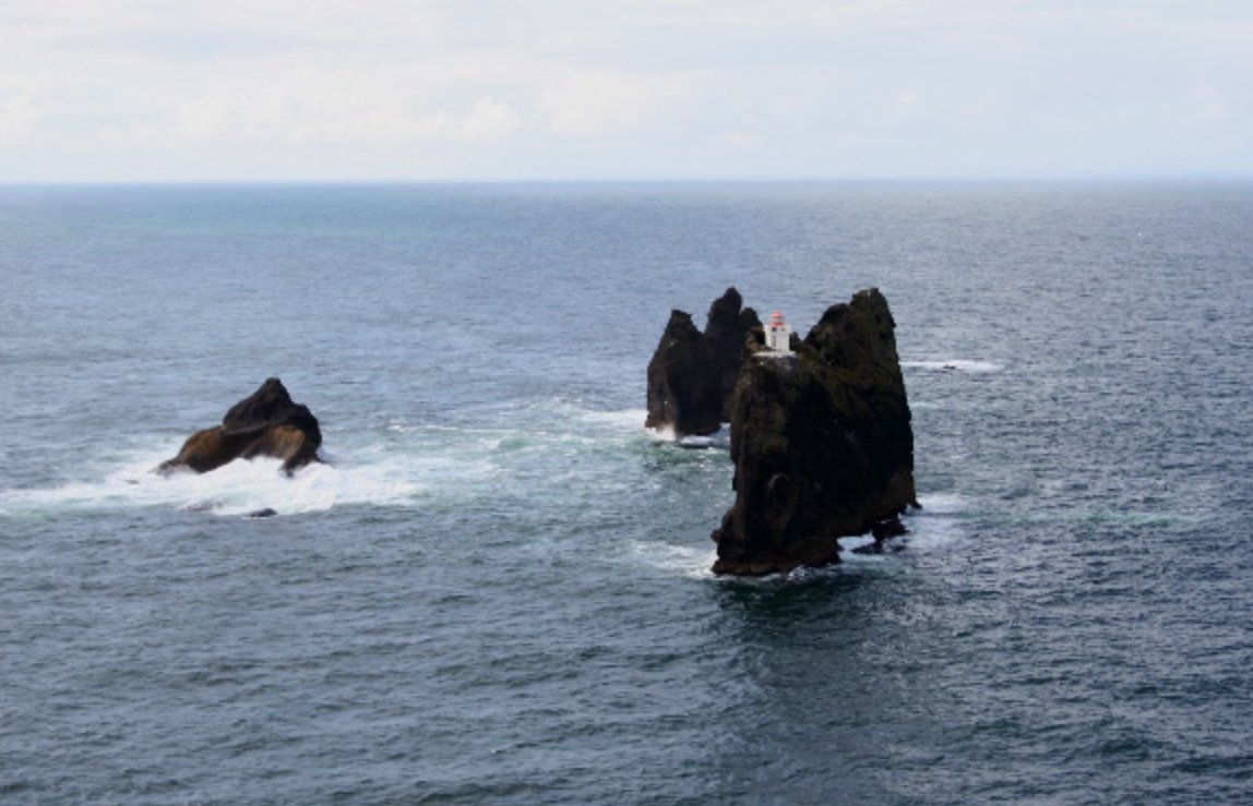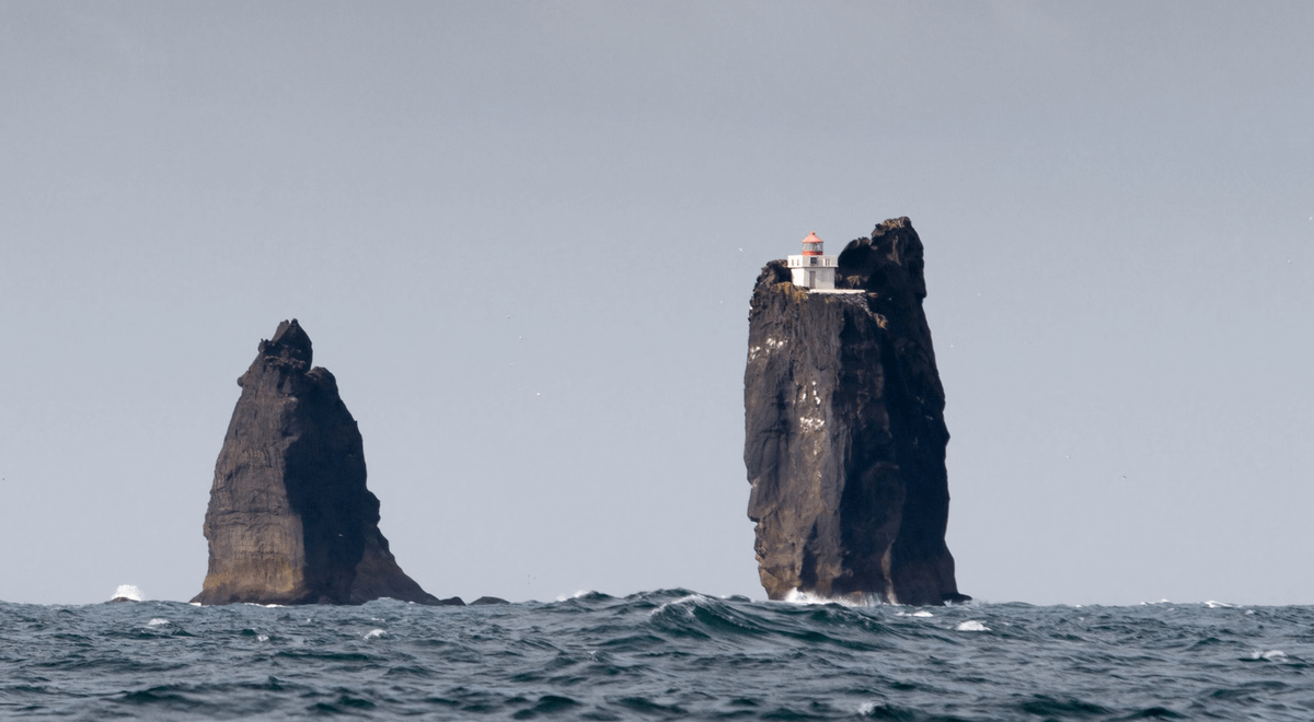 El faro de Thridrangaviti se encuentra en Islandia, en el archipiélago de las Islas Vestman. Su nombre significa literalmente "tres pilares de roca", y se asienta sobre el más alto de todos, un puntiagudo peñasco llamado Háidrangur.