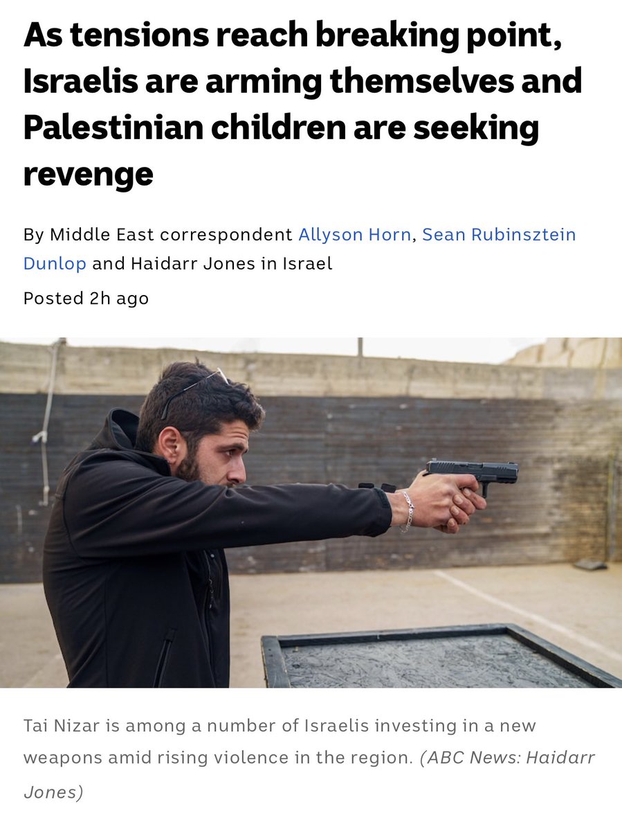 https://twitter.com/abcnews/status/1638633167262461952can’t say I’m surprised by the abc in the slightest but the fact they are leading with this? as though the armed military occupying state is on the defensive? ‘tensions’? you are reporting from occupied never-ceded palestine