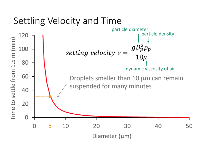 2/ But aerosol experts like @linseymarr @jljcolorado @kprather88 and @ShellyMBoulder have jumped in to point out that even 10µm droplets stay in the air for much longer, and Paul Baron's pres to CDC suggests the same.