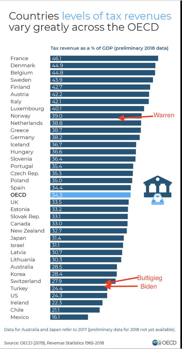 https://twitter.com/RichardRubinDC/status/1202609921000386571First, as @RichardRubinDC notes, the OECD data show US tax revenues (at all levels of government) falling from 25.9% of GDP in 2016 to 24.3% in 2018. The Trump tax cuts are the big driver there. 2/