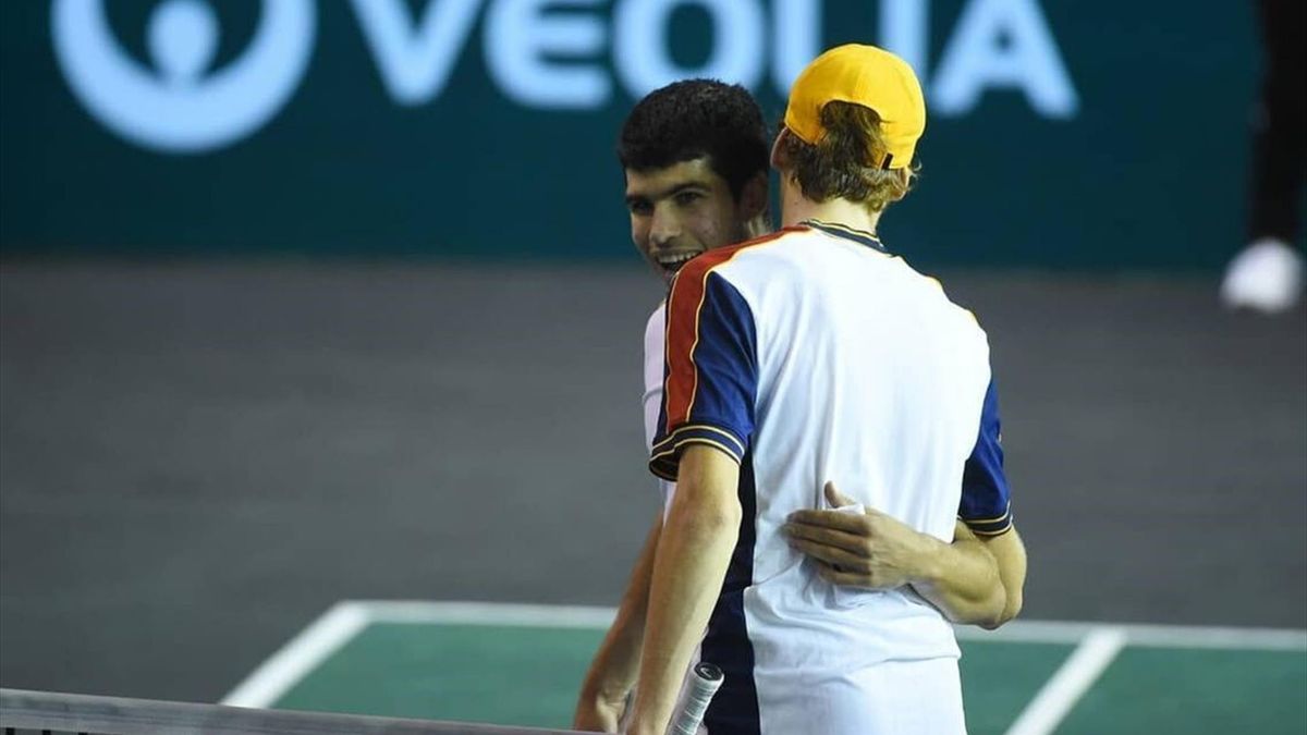 Alcaraz y Sinner se conocen desde que son pequeños, pese a que Jannik tiene dos años más que él. Se encontraron por primera vez en un Challenger, en Alicante, donde Carlitos le ganó en tres sets.