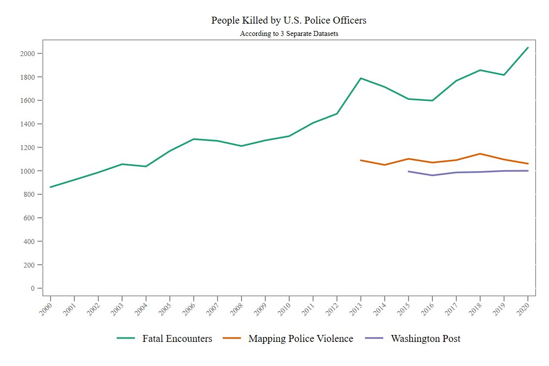 According to @fatalencounters, more than 29,000 police-involved deaths occurred between 2000 and 2020 - an average of 1400 each year.