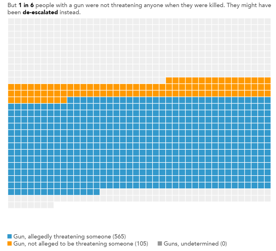 Look, all I meant was: every police killing =/= criminal homicide. Some do (likely more than 21!), and should be charged as such. Exactly how many? We don’t know. But it’s not all of them.