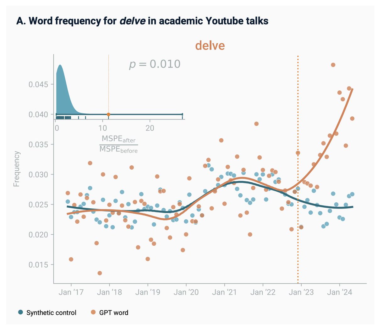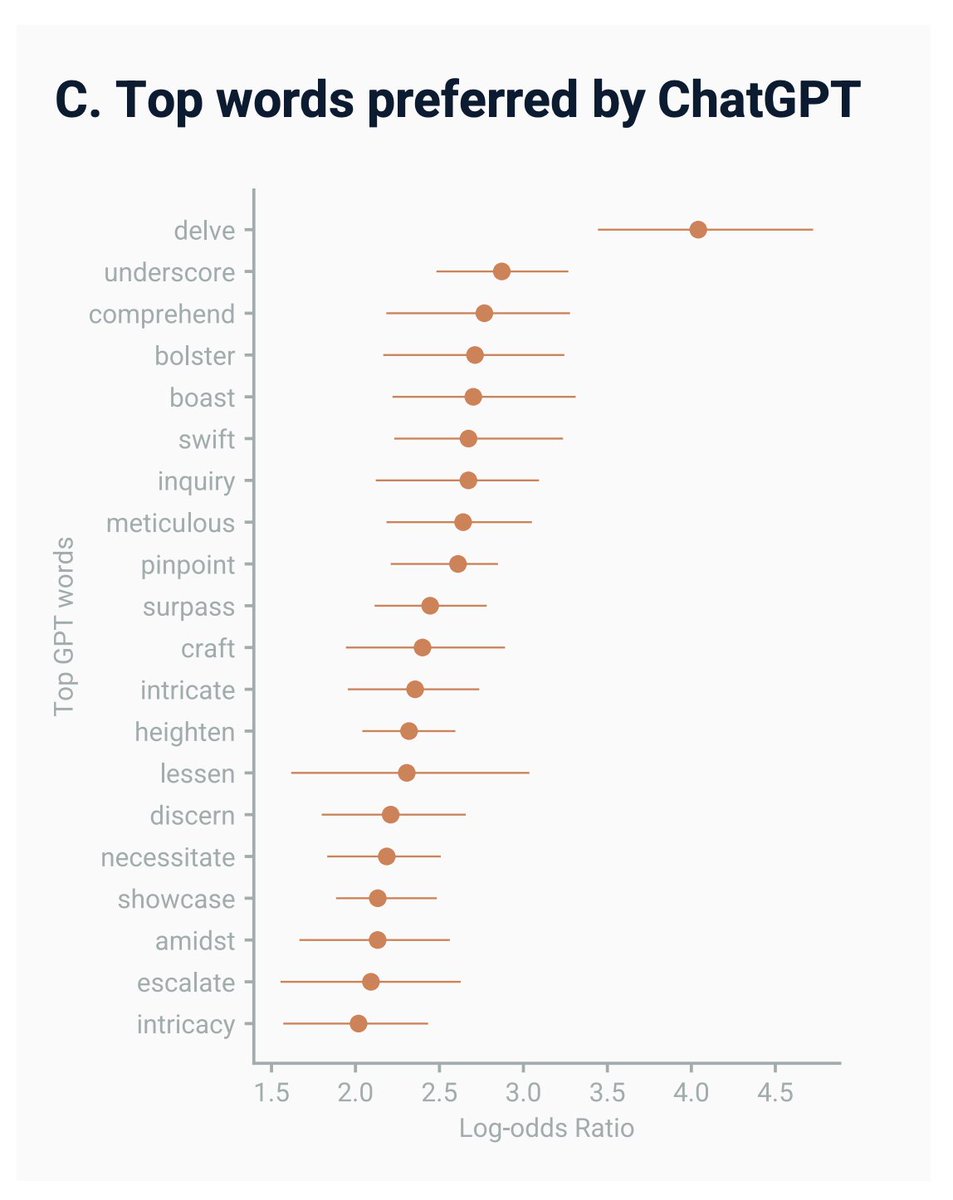 O estudo do Instituto Max Planck usou métodos de inferência causal para comparar o uso de palavras ANTES e DEPOIS do lançamento do ChatGPT (nov/2022)