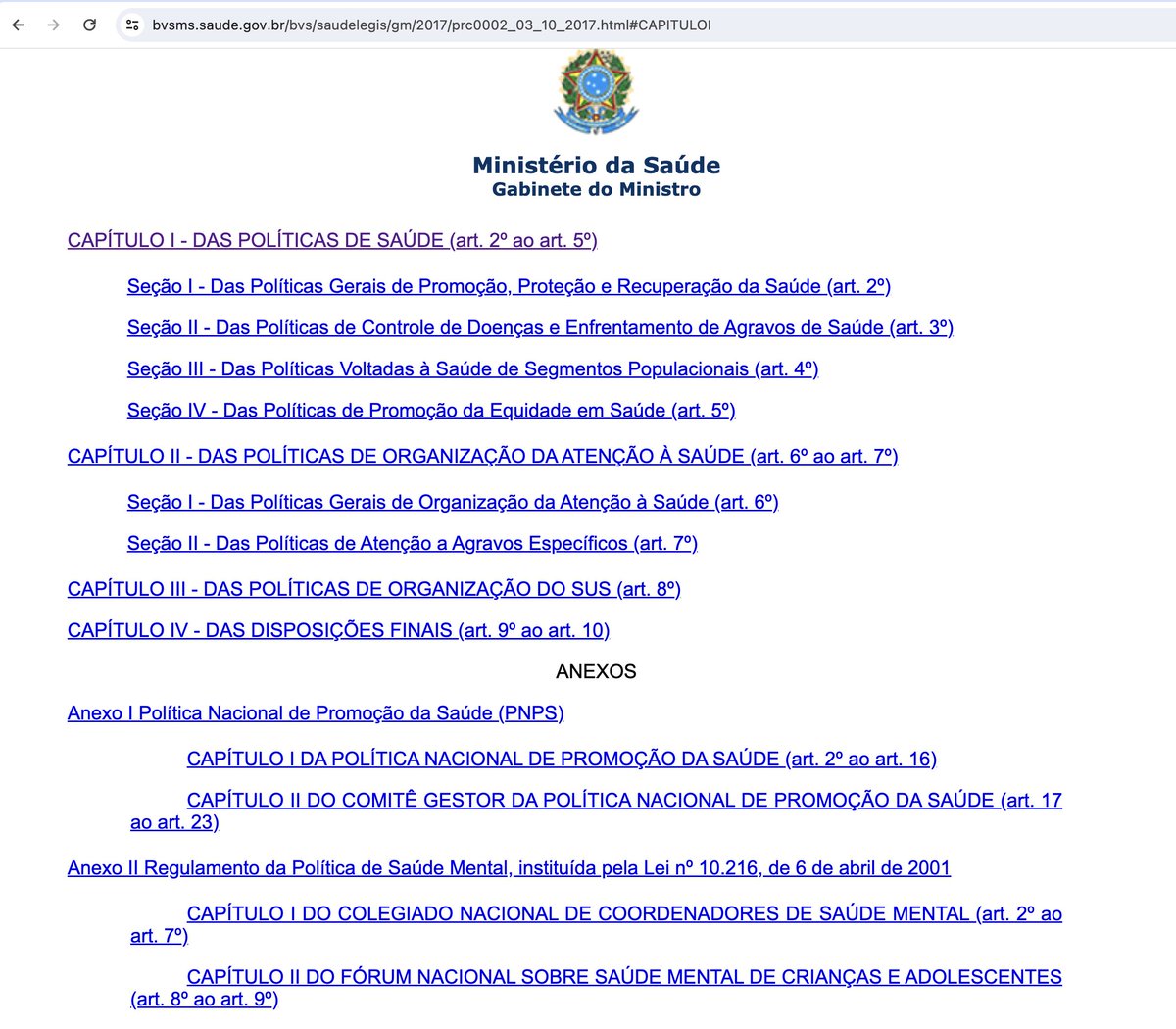 Esta situação mudou em 3 de outubro de 2017, com a publicação da PORTARIA DE CONSOLIDAÇÃO Nº 2, que reúne as normas sobre as POLÍTICA NACIONAIS de saúde do SUS.