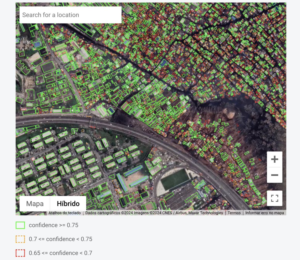 A geometria é derivada de imagens de satélite
