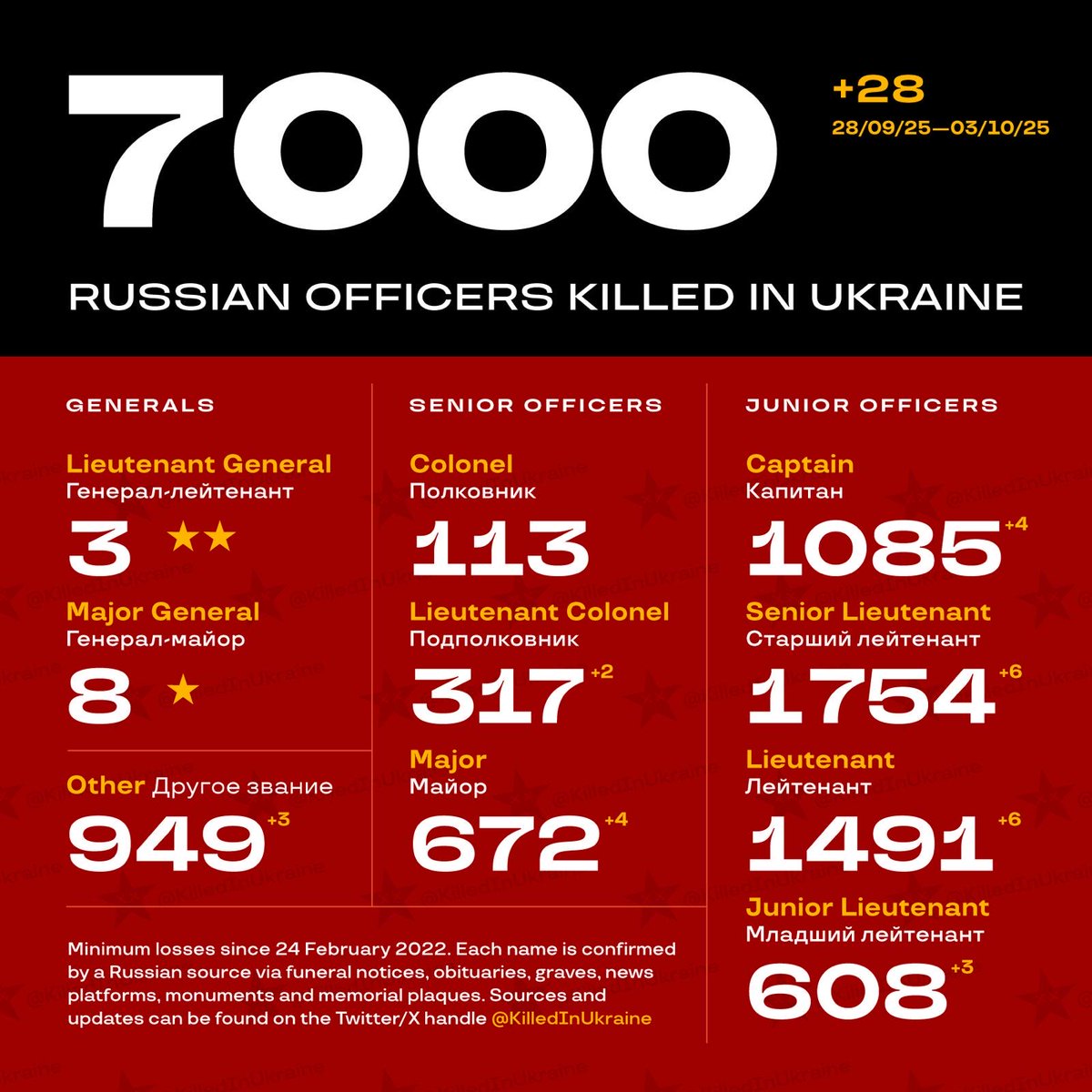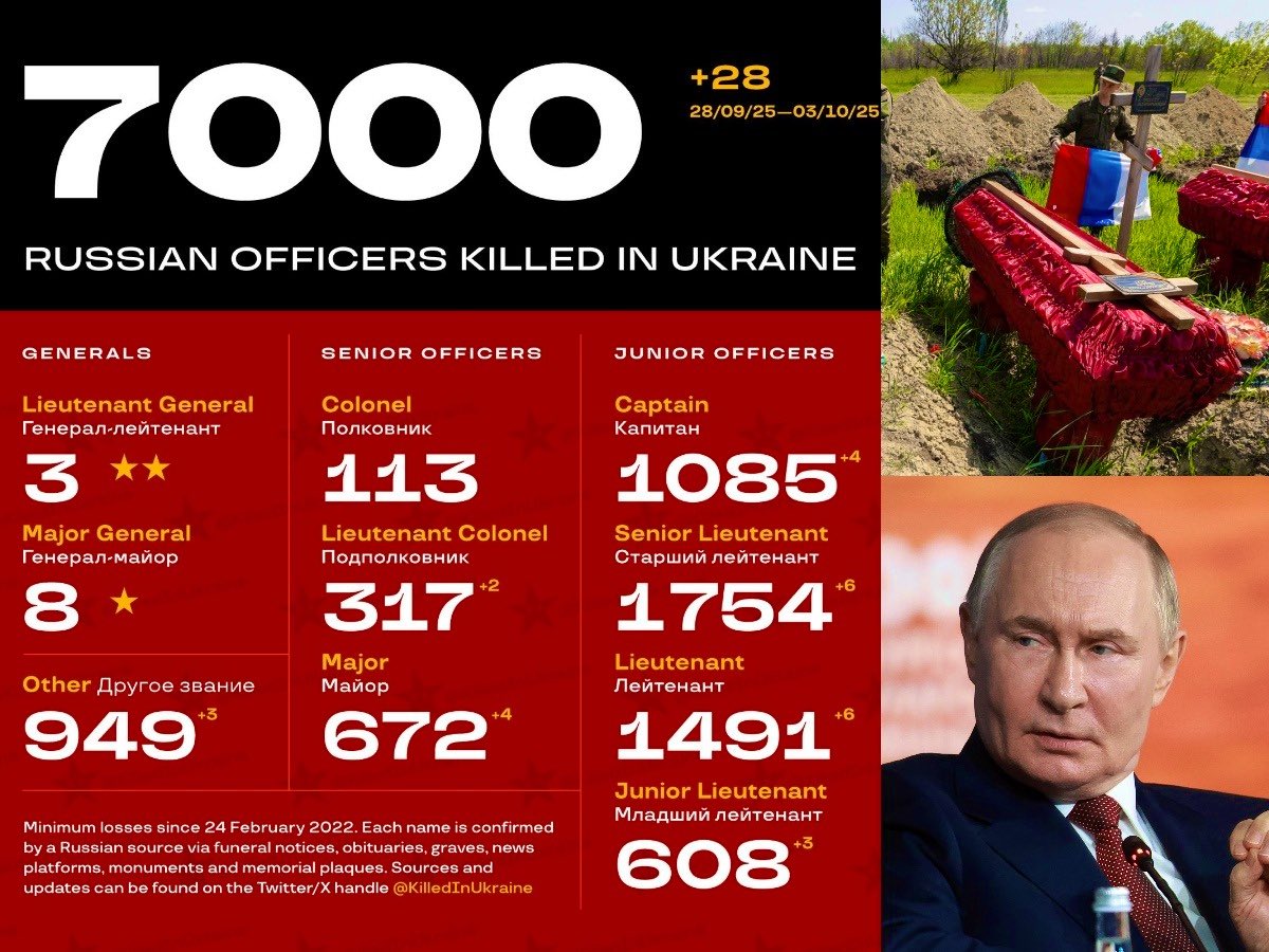 This war is a disaster. The numbers speak for themselves 2/5 @KilledInUkraine has confirmed 7,000 dead Russian officers.