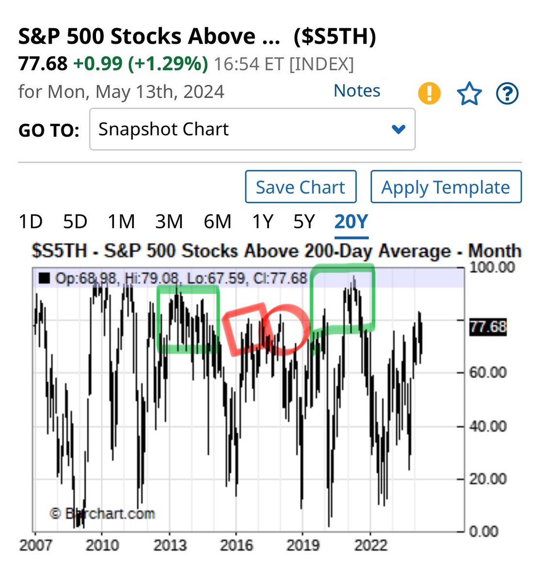https://twitter.com/Barchart/status/17900843961225175942. κ·Έλ¬λ μλ΄ κΈ°μ€ 80%μ μ’ λͺ©μ΄ 200μΌ μ£Όκ° μ΄λνκ· μ μμ μμΉνλ κ²μ