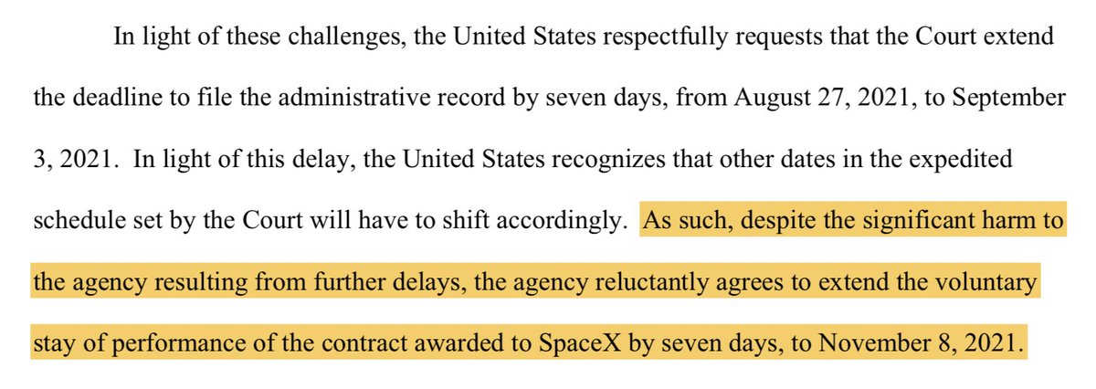 Under NASA's voluntary pause to SpaceX's contract — which it only did if Blue Origin agreed to move litigation quickly — the end date was November 1st. Now it looks like it'll be November 8th.