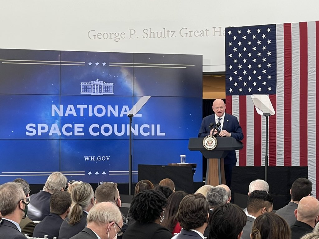 Sen. Mark Kelly, a former astronaut, is introducing @VP Harris.