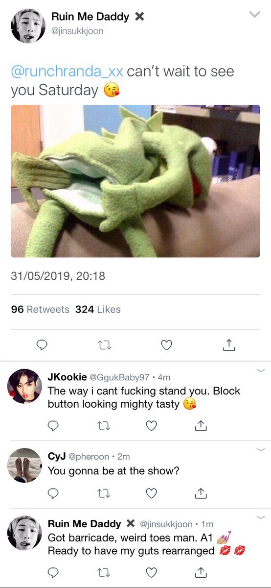 #namjin Crack Au in which Jin runs a hard stan account and gets barricade at a concert — Joon grabs Jin’s phone in the middle of the concert while he’s filming And proceeds to mouth out his personal phone number into the camera
