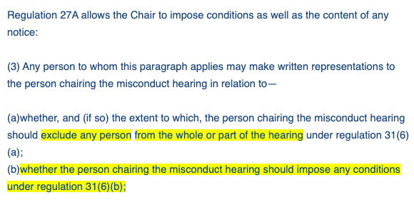 officer's anonymity was allowed under reg. 27A of the Police Regulations 2012. They say the media have "no entitlement" to read the order, or to make challenge it. They did send this highlighted extract, implying that the "condition" of the hearing being public was anonymity 2/